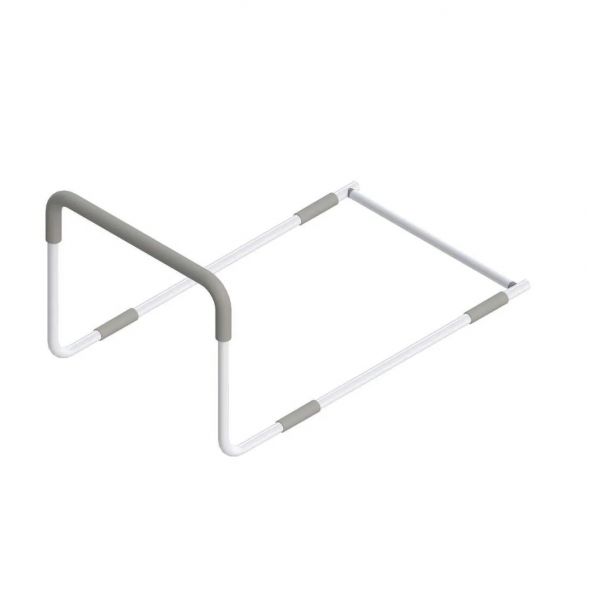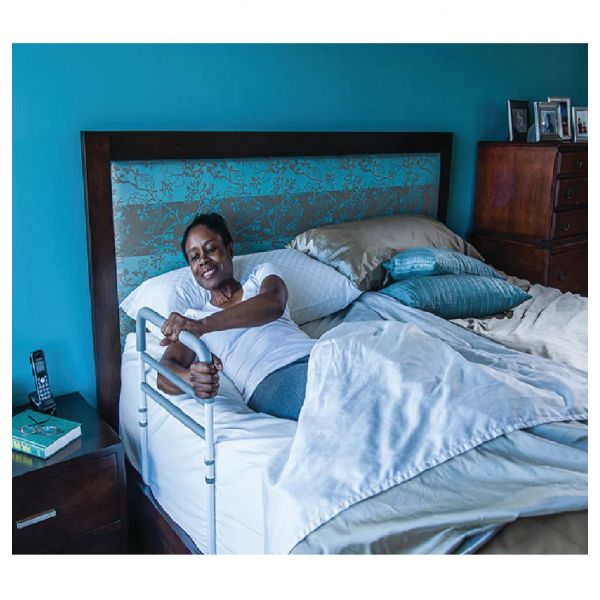 An “inverted U” style bed rail for home beds, providing a unique combination of occupant safety and in-bed mobility. This product is ideal for moving from a lying to sitting position in bed and at bedside. Extremely easy to install, the entire “inverted U” shaped rail installs in minutes with basic tools – simply slides between mattress