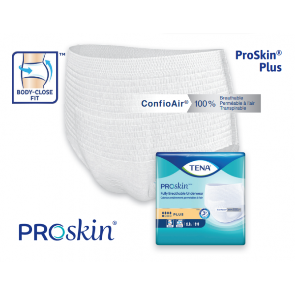 TENA ProSkin® Plus Protective Underwear with ConfioAir® 100% Breathable Technology allows humidity to evaporate to maintain skin’s natural moisture balance.